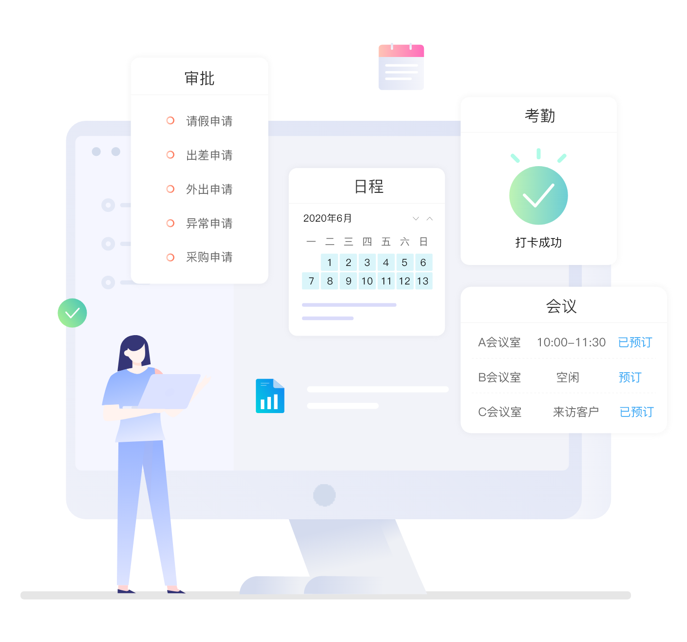 智慧辦公數據一覽,提升服務質量裝修、遷入遷出申請、物業報修、物品放行、最新代辦任務等